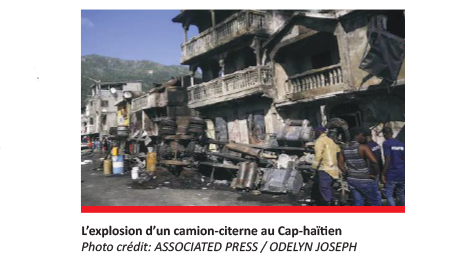 14 décembre: Environ 95 personnes sont mortes à la suite de l’explosion d’un camion-citerne transportant de la gazoline dans la ville du Cap-Haitien, plus précisément dans le quartier de Samarie et de la Fossette. Le bilan de départ de 75 morts s’est en quelques jours alourdi à 95 suite au décès d’autres victimes qui recevaient des soins dans des centres hospitaliers.