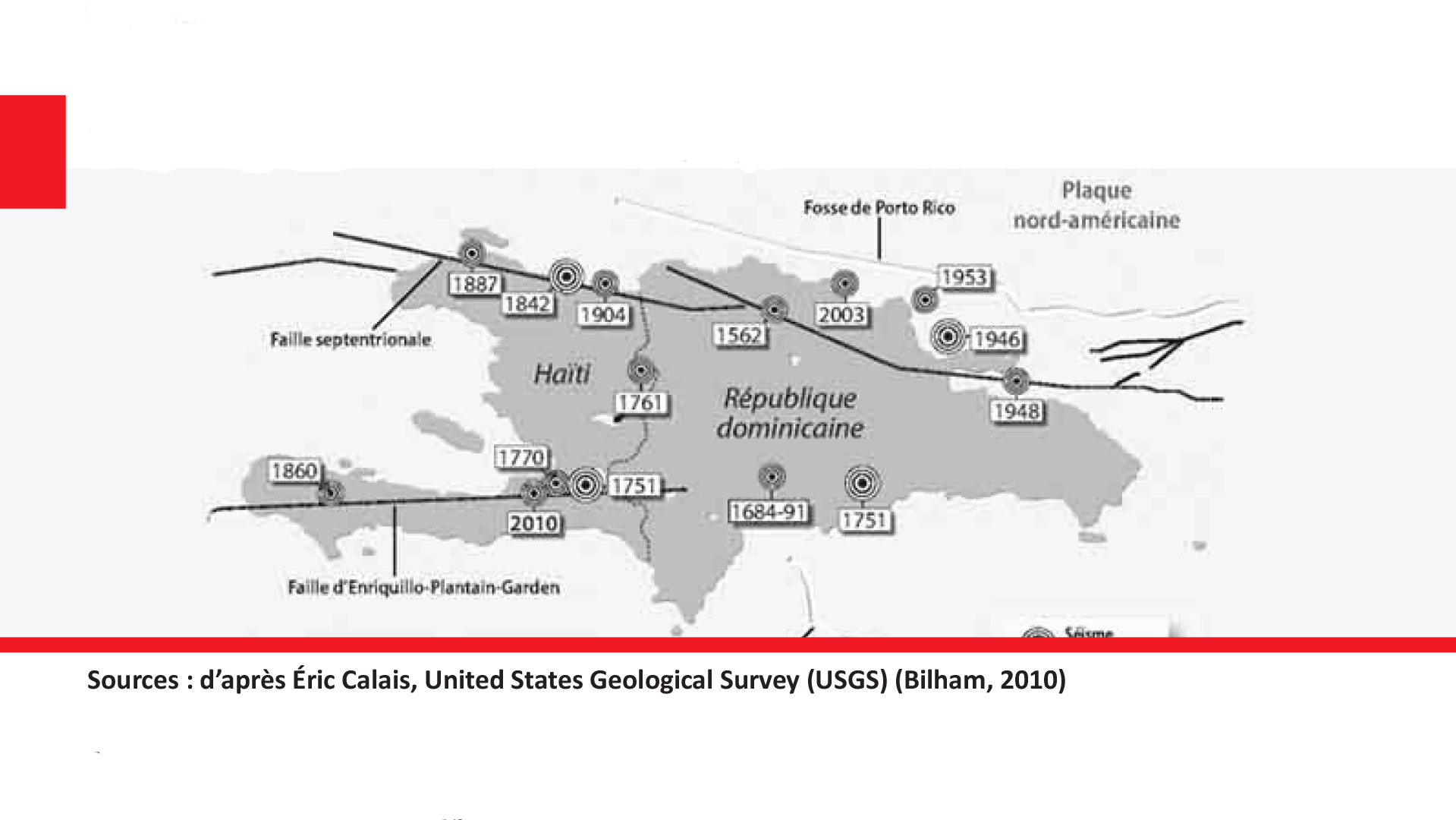 •          Un séisme majeur de magnitude (Mw) 7.0 dont l’épicentre a été localisé à Léogâne à moins de 30 km de Port-au-Prince et un séisme de magnitude 8.0 en 1904 frappant particulièrement les villes du Cap Haïtien et Port de Paix;