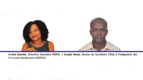 Jo-Ann Garnier, Directrice Executive ENPAK / Joseph Alexis, Bureau du Secrétaire d’Etat à l’Intégration des Personnes Handicapées (BSEIPH)