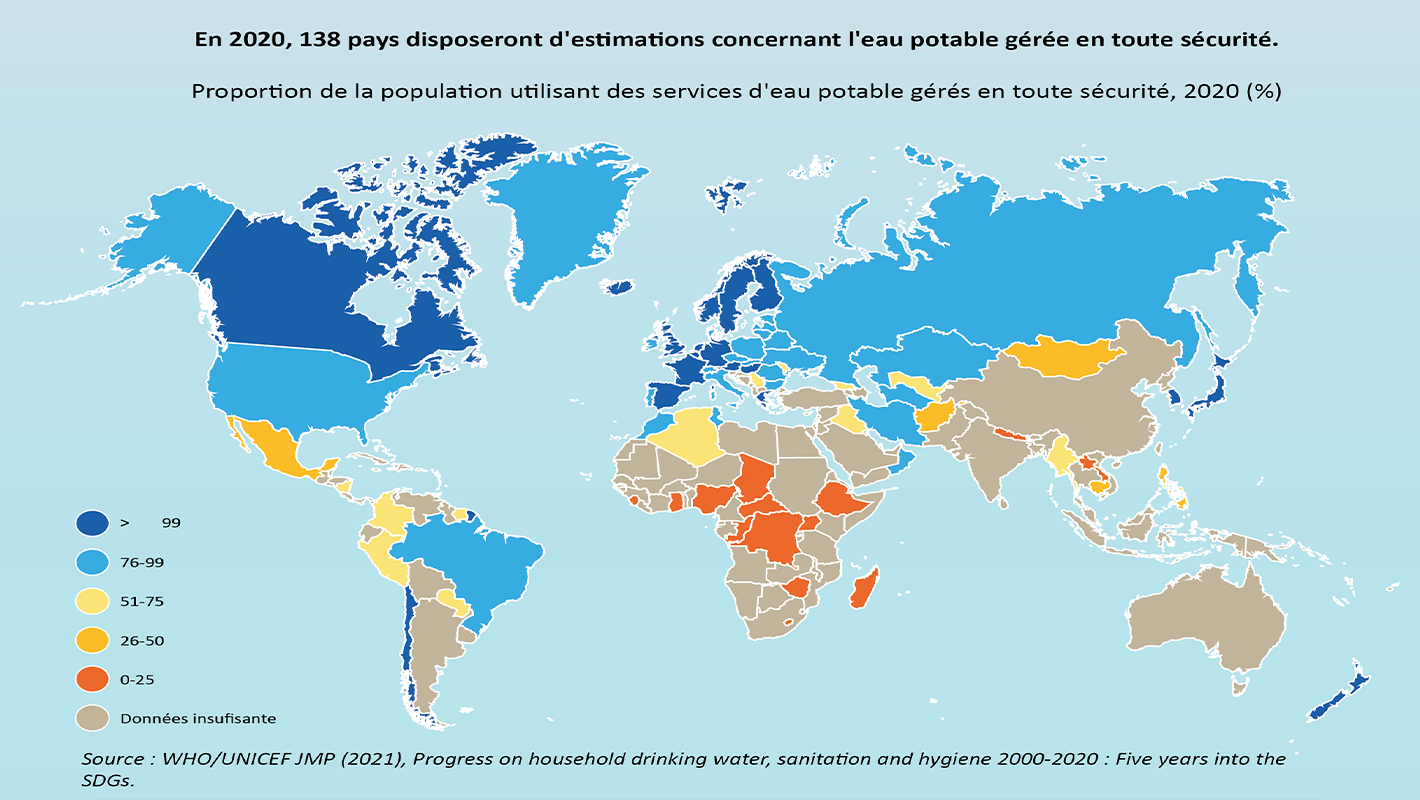 L’eau est d’une importance capitale pour le développement durable. C’est pourquoi, la distribution d’une quantité d’eau suffisante et de qualité à tous est prise en compte dans l’agenda 2030 de l’ONU. Dans un contexte où la quantité de l’eau disponible à l’humanité se raréfie, mettant des régions en entier dans des situations de stress hydrique, une gestion efficace de l’eau est nécessaire. Selon un rapport de l’ONU en 2015, le monde devra faire face à un déficit hydrique de 40% dès 2030. La rareté de l’eau, fera du stress hydrique le principal problème du 21ème siècle. Actuellement, il y a 2 milliards de personnes qui sont touchées par le problème du stress hydrique. Chaque année, l’Unicef dénombre 2.6 millions de personnes qui meurent en raison des maladies liées à l’eau et à un environnement de qualité. Cependant, de réels progrès ont été réalisés au cours des dernières décennies, car entre 2000 et 2017, le nombre de personnes ayant accès à l’eau est passé de 5 à 6.5 milliards. Selon l’Organisation mondiale de la Santé (OMS), 1.3 milliard de personnes, soit 17% de la population mondiale, doivent parcourir près de 30 minutes pour avoir accès à l’eau.