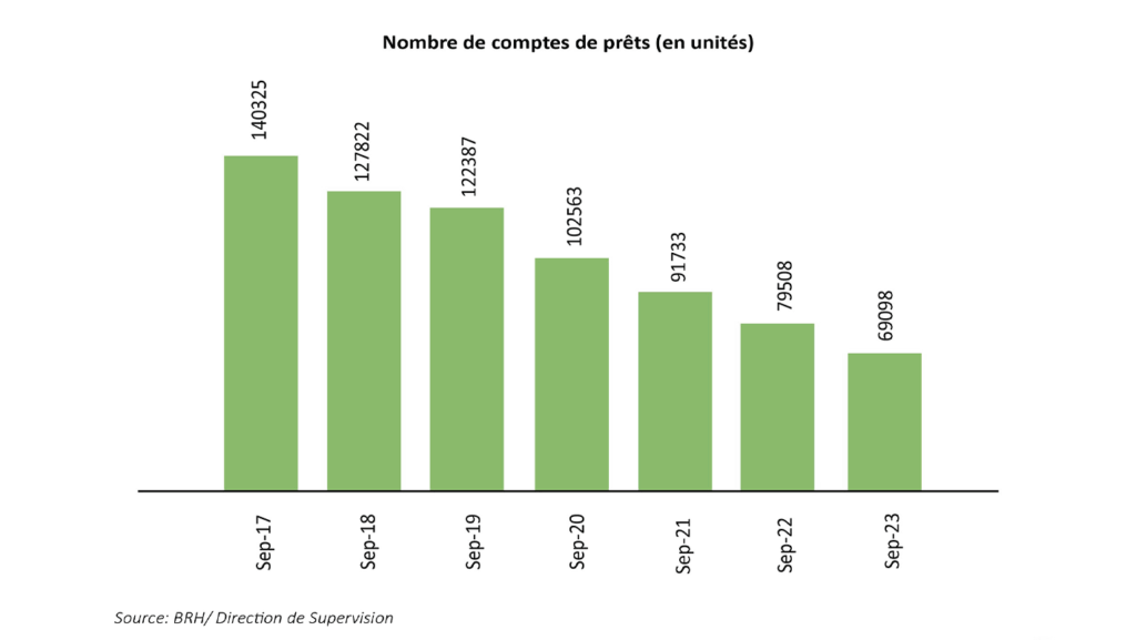 En effet, le portefeuille de crédit pour l’année 2023 est en situation de repli de 10% après avoir enregistré un taux de croissance évalué à 14.1%, suivant l’analyse de l’économiste Lalime d’une note publiée récemment par la Banque de la République d’Haïti (BRH) sur le crédit bancaire pour la période allant de septembre 2022 à septembre 2023. Selon cette note, le système de crédit régresse à un rythme semestriel sur l’année 2023. Cette variation négative reflète, de façon générale, une diminution de crédit dans tous les secteurs de la vie nationale.