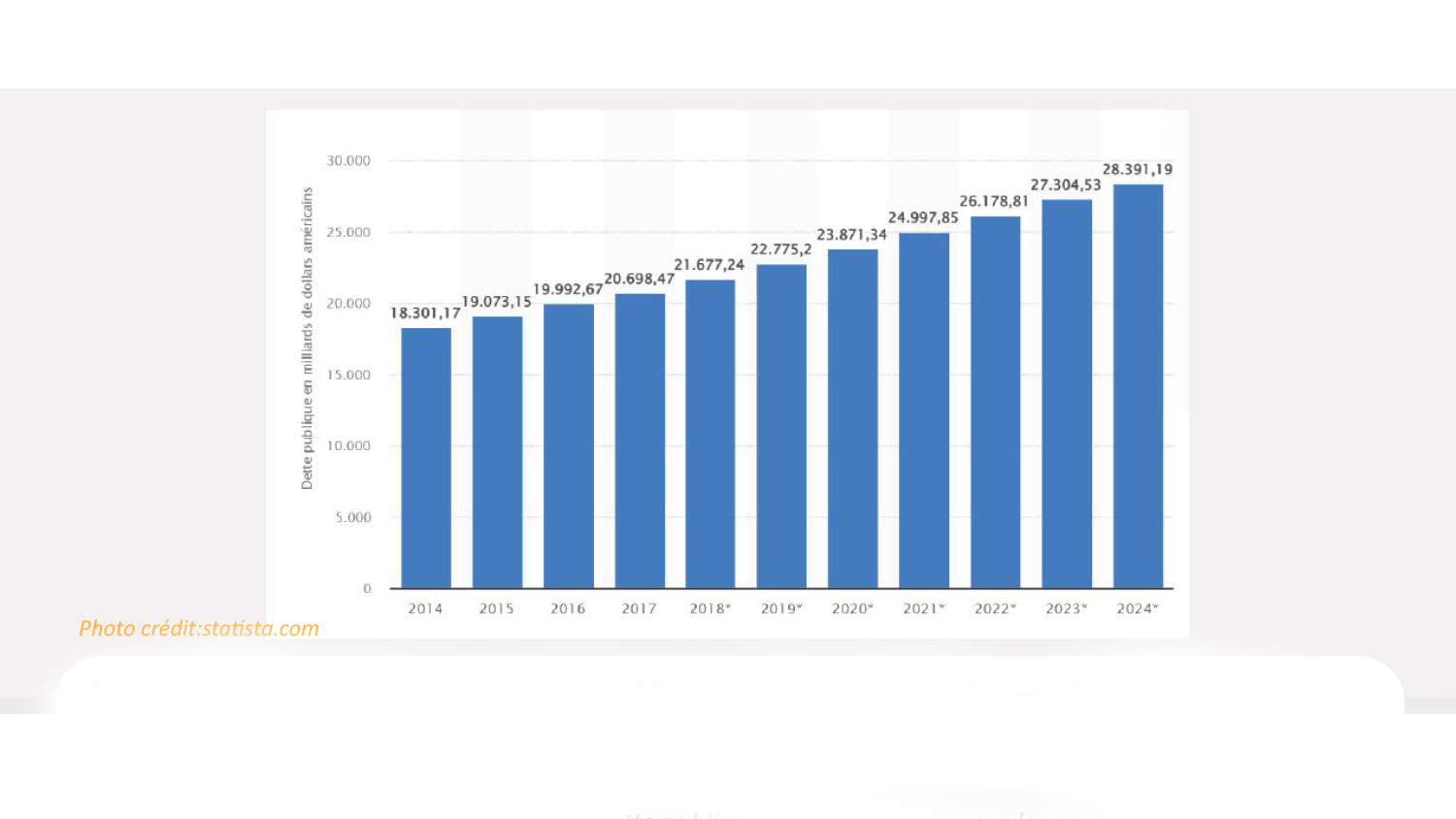 En raison de la «bataille» entre les deux puissances, la Chine pourrait décider de vendre les bons achetés entre les mains des États-Unis, se désendettant ainsi des États-Unis. «Cela peut causer de gros chocs au niveau financier dans l’économie américaine. Et si cette économie est frappée, le reste du monde peut être touché», a fait savoir Kesner Pharel. La dette américaine en chiffres: Intérêt annuel payé sur la dette: 1.2 mille milliards de dollars. Revenu taxe aux États-Unis: 4.9 mille milliards de dollars. Dépenses faites: 6 mille milliards de dollars. Et, déficit annuel prévu en 2023: 2 mille milliards de dollars Où se trouve le problème? Les Républicains veulent réduire le déficit budgétaire. Leur chef à la chambre basse soutient qu’il va accepter d’augmenter le plafond monétaire afin que le Gouvernement puisse fonctionner et payer ses dettes et ses employés – si les Démocrates acceptent de réduire les dépenses publiques. La politique influence l’économie. Il y a 3 niveaux: la politique, le fiscal et après le monétaire. Donc, au niveau politique, il y a de gros débats qui se font. D’ici quelques semaines, il y a un ensemble de dettes que les EU ne vont pas pouvoir payer.