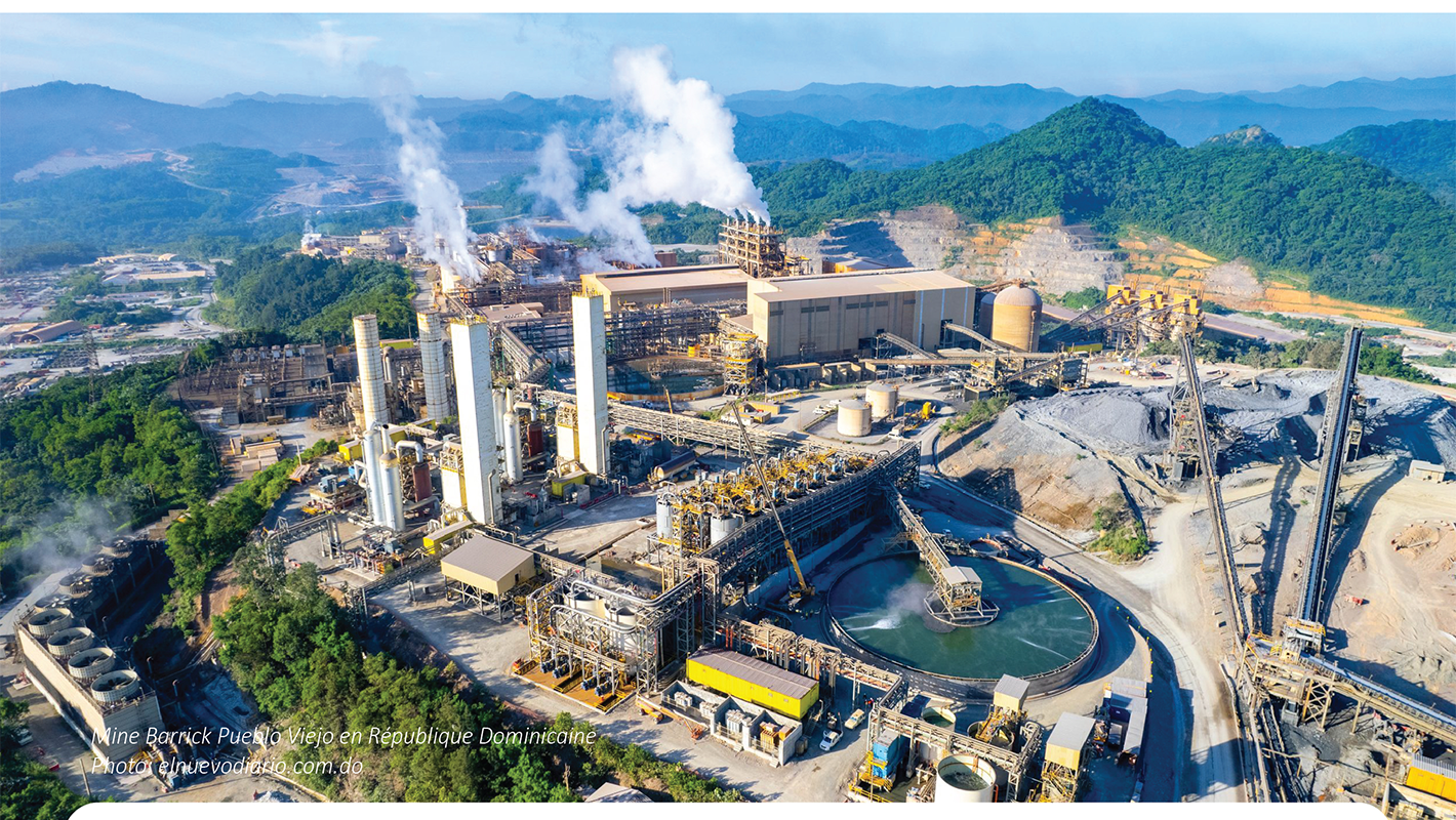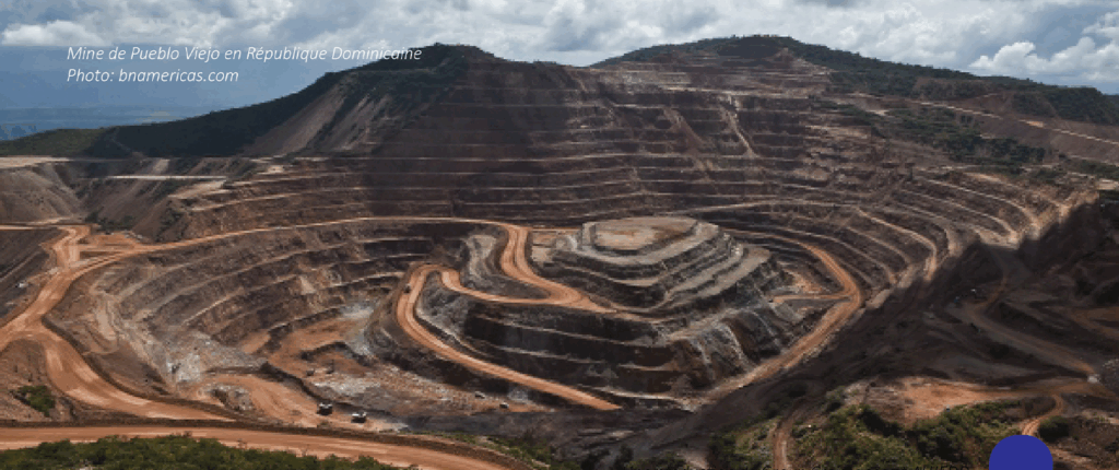 Le potentiel minier des Caraïbes, et en particulier de la République dominicaine, est caractérisé par un paysage géologique riche, façonné par l’activité volcanique et les mouvements tectoniques, qui a donné naissance à d’importants gisements de minéraux, notamment d’or, d’argent, de cuivre et de nickel. La République dominicaine abrite la mine de Pueblo Viejo, l’une des plus grandes exploitations aurifères d’Amérique latine, avec des réserves prouvées d’environ 10.2 millions d’onces d’or, ce qui souligne le rôle du pays en tant qu’acteur clé du secteur minier régional. Cette industrie florissante est devenue de plus en plus vitale pour l’économie dominicaine, contribuant à hauteur de 4,13 % au PIB de la nation et représentant près de 46 % des exportations totales à partir de 2020 (Gate Source HR), ce qui reflète son importance stratégique dans le cadre commercial de la nation.