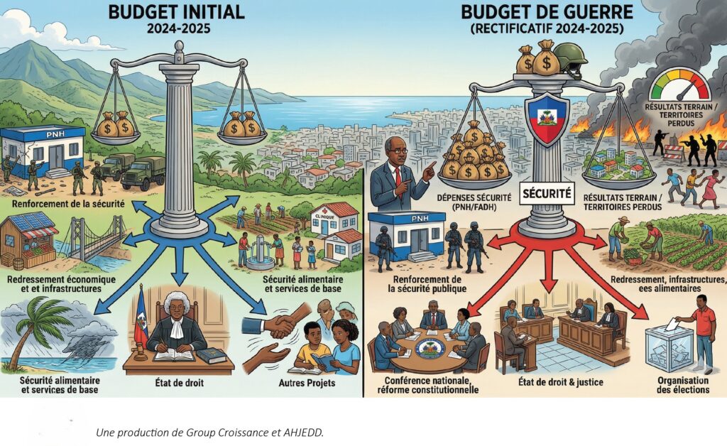 Haïti continue d’égrener son chapelet de malheurs constitué de cataclysmes naturels, d’instabilité politique, d’insécurité généralisée maintenue par des groupes armés, de chômage, d’inflation et d’insécurité alimentaire. Face à cette situation, le CPT installé en avril 2024, après un budget rectificatif proposé en août de la même année, a préparé, présenté et adopté le Budget initial 2024-2025. Le Premier ministre d’alors, Gary Conille, a fait état des cinq grandes priorités de son gouvernement dans ce budget, parmi lesquelles le retour à la sécurité en Haïti et le redressement économique.