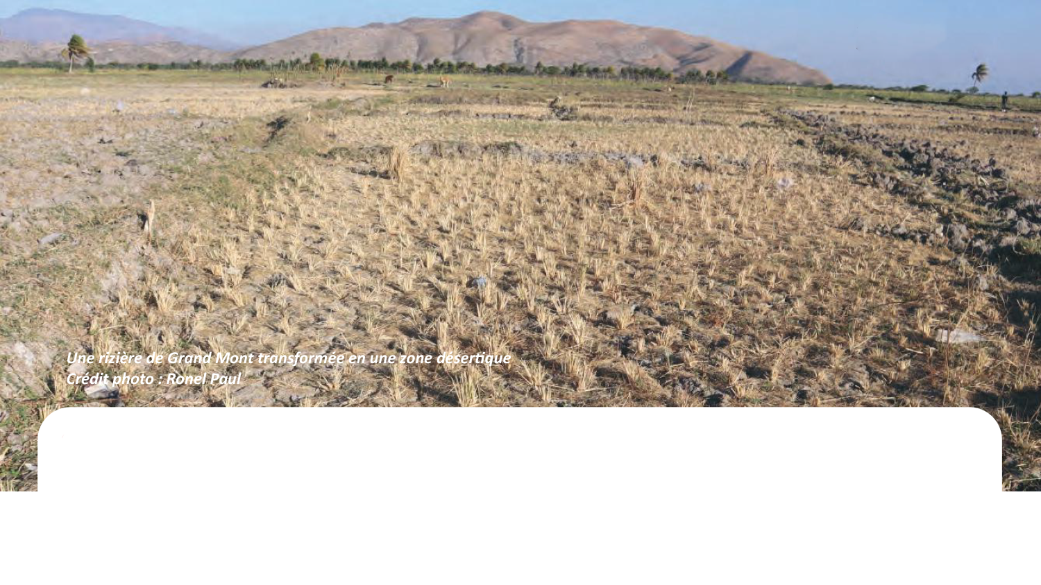 Depuis plus de trois ans les agriculteurs de Grand Mont, notamment les riziculteurs dans la Plaine des Gonaïves, font face à une sécheresse sans précédent. Conséquences, ces derniers éprouvent de grandes difficultés à cultiver leurs  rizières. Pratiquant une agriculture tributaire de la pluie, qui ne tombe que rarement à cause du changement climatique, les rizières de Grand Mont sont transformées en une zone désertique.