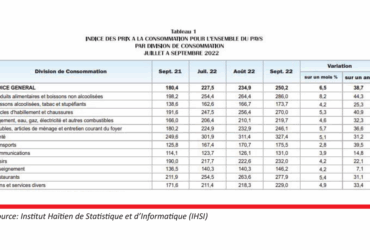 Nous reproduisons in extenso cet article publié dans les colonnes du quotidien Le Nouvelliste et qui rend compte du nouveau pic de l’inflation atteint en septembre 2022 en Haïti, et qui...